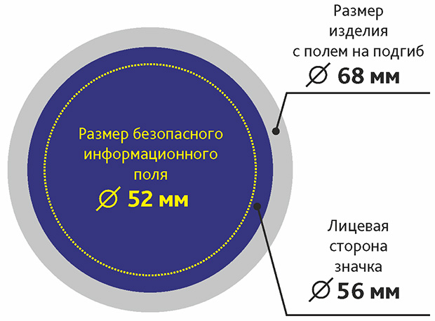 Размер изделия с полем на подгиб: диаметр 68 мм;